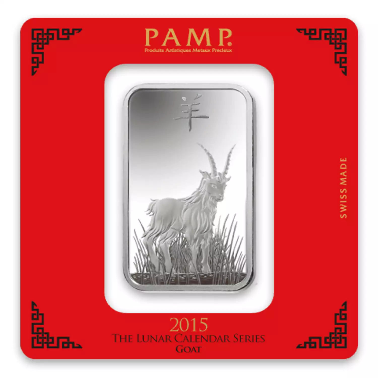 Buy the high-quality, magnificent 100g PAMP Silver Bar - Lunar Goat today from us online! The latest silver price is updated on our website every minute.