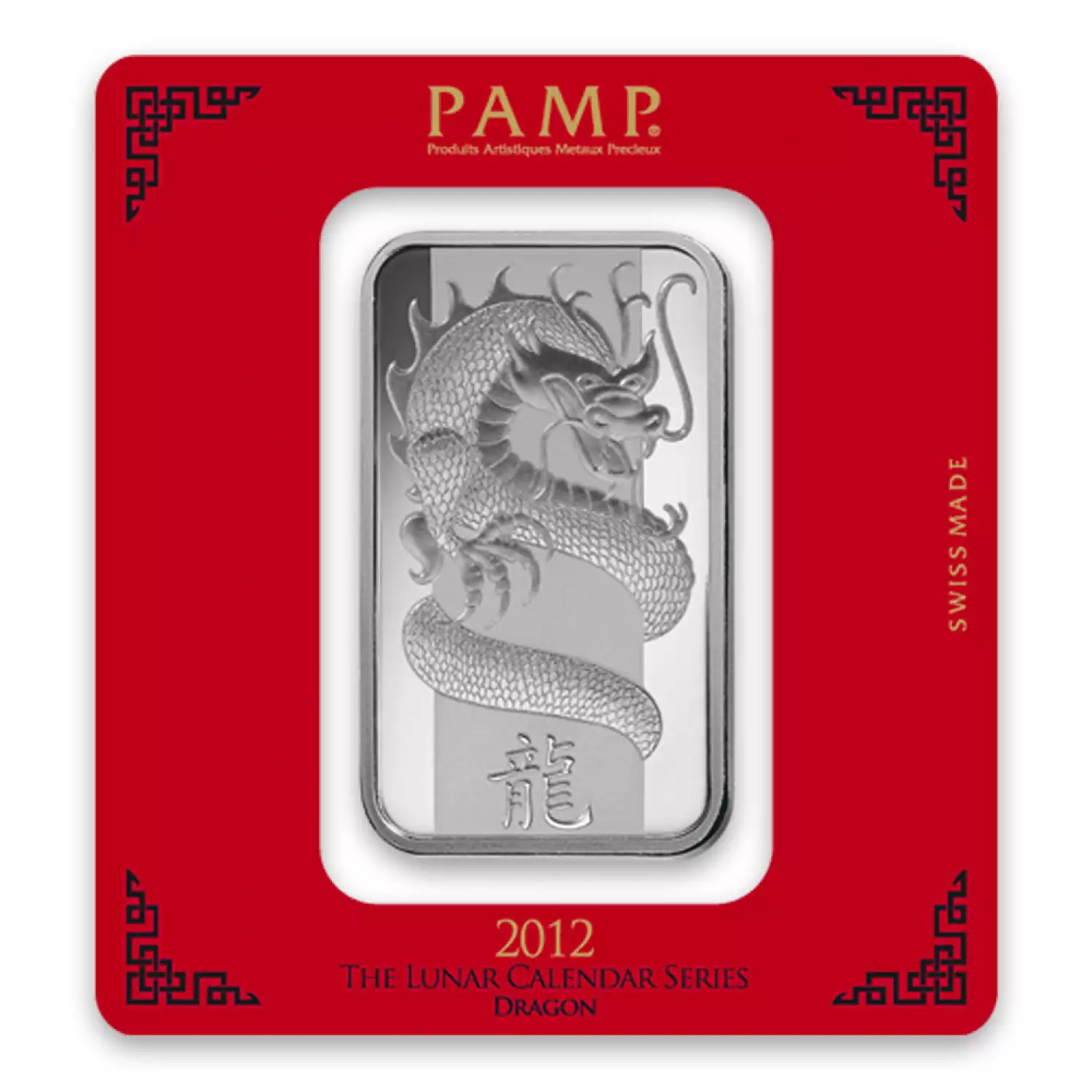Buy the high-quality, magnificent 100g PAMP Silver Bar - Lunar Dragon today from us online! The latest silver price is updated on our website every minute.