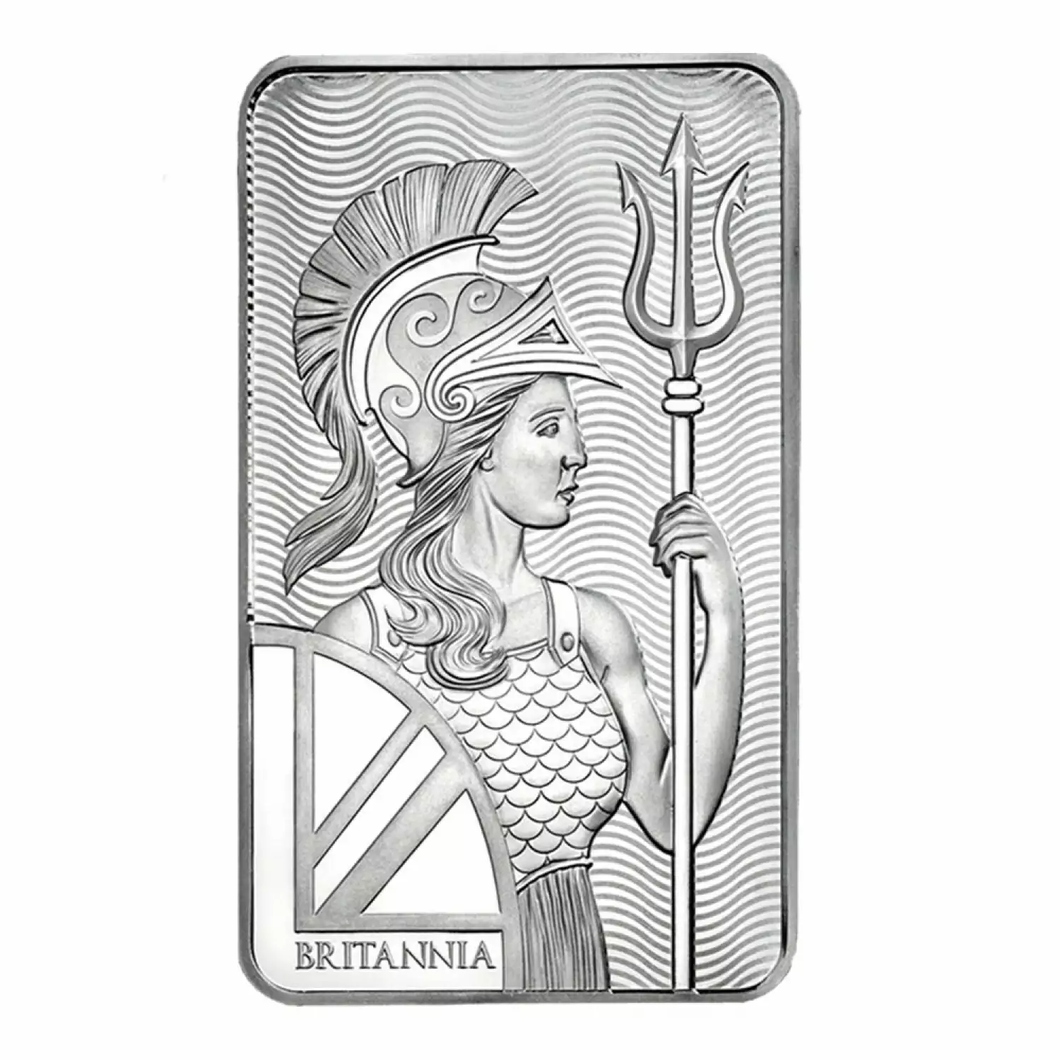 The 10 oz Silver Britannia Bar is the second-largest bar in the Britannia range by Royal Mint. It contains 10 troy ounces of .999 pure silver.