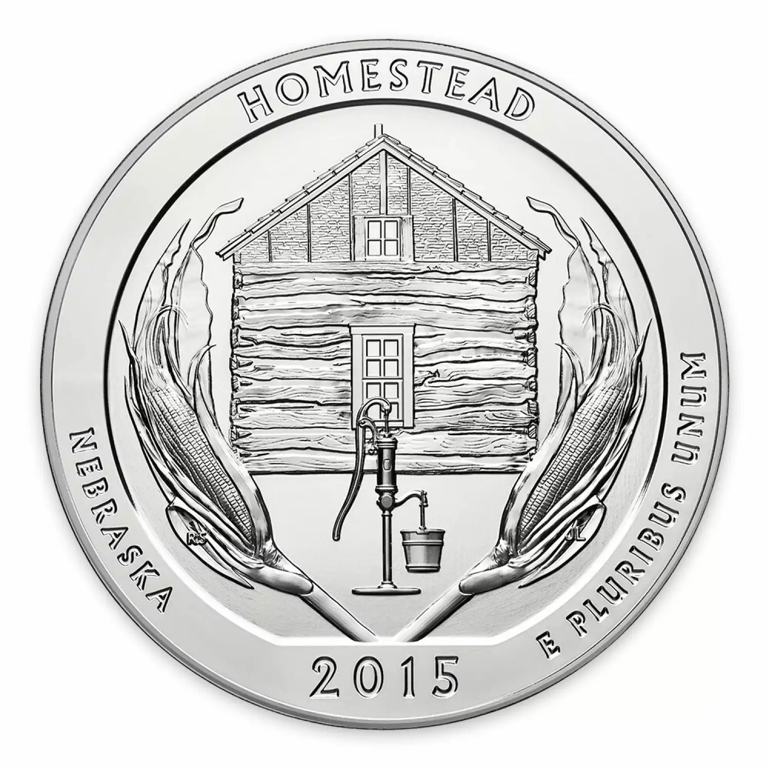 Since 2010, the US Mint released five silver America the Beautiful coins annually. The 5oz silver coins will be complete in 2021, each representing a historical monument or a treasured national park. These bullion coins were introduced following the success of the state quarter program.Homestead National Monument of America, a unit of the National Park System, commemorates passage of the Homestead Act of 1862.