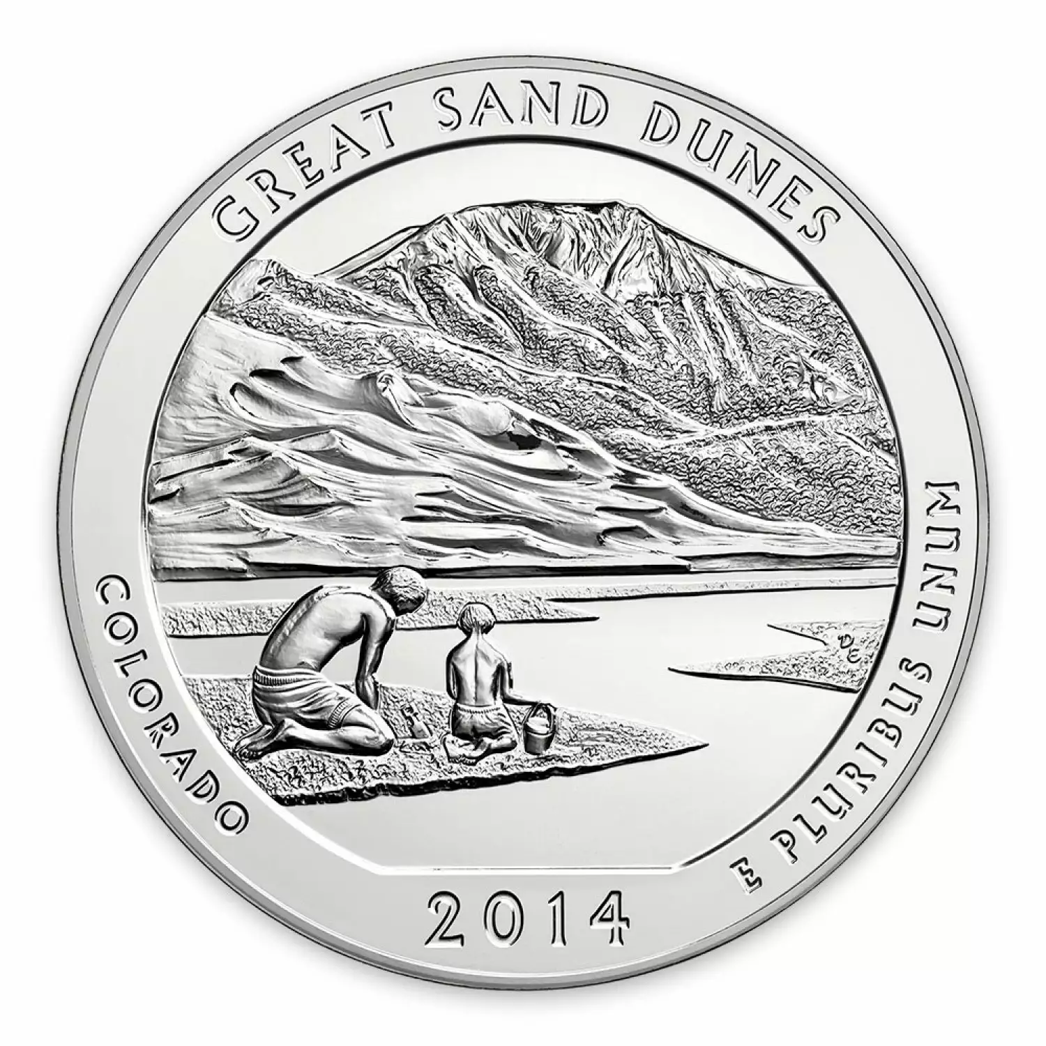 Since 2010, the US Mint released five silver America the Beautiful coins annually. The 5oz silver coins will be complete in 2021, each representing a historical monument or a treasured national park. These bullion coins were introduced following the success of the state quarter program.Great Sand Dunes National Park and Preserve is an American national park that conserves an area of large sand dunes up to 750 feet (229 m) tall[4] on the eastern edge of the San Luis Valley, and an adjacent national preserve located in the Sangre de Cristo Range, in south-central Colorado, United States.