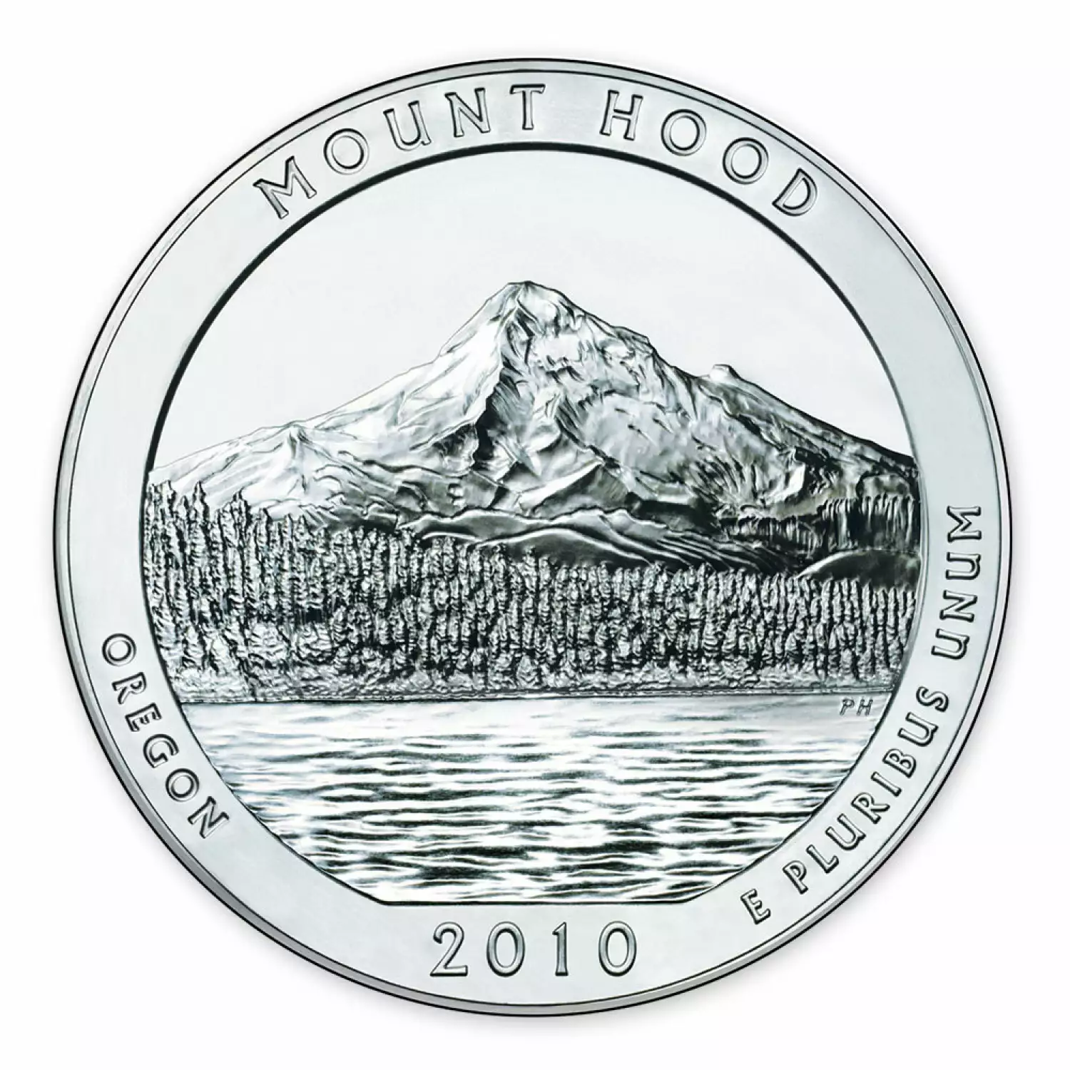 Since 2010, the US Mint released five silver America the Beautiful coins annually. The 5oz silver coins will be complete in 2021, each representing a historical monument or a treasured national park. These bullion coins were introduced following the success of the state quarter program.he Mount Hood National Forest is 62 miles (100 km) east of the city of Portland, Oregon, and the northern Willamette River valley. The Forest extends south from the Columbia River Gorge across more than 60 miles (97 km) of forested mountains, lakes and streams to the Olallie Scenic Area, a high lake basin under the slopes of Mount Jefferson. The Forest includes and is named after Mount Hood, a stratovolcano.