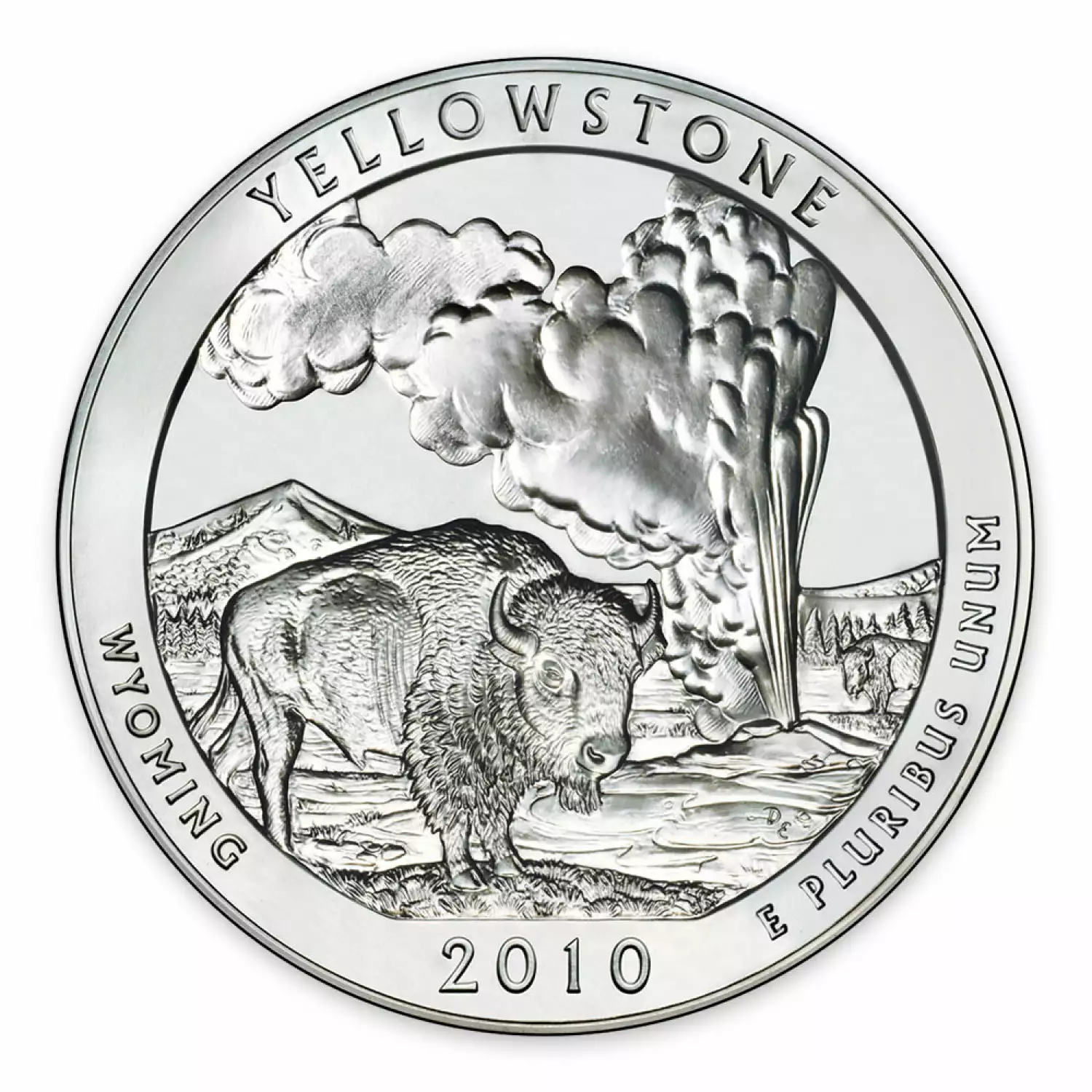 Since 2010, the US Mint released five silver America the Beautiful coins annually. The 5oz silver coins will be complete in 2021, each representing a historical monument or a treasured national park. These bullion coins were introduced following the success of the state quarter program.Yellowstone National Park is an American national park located in Wyoming, Montana, and Idaho. It was established by the U.S. Congress and signed into law by President Ulysses S. Grant on March 1, 1872. Yellowstone was the first national park in the U.S. and is also widely held to be the first national park in the world.