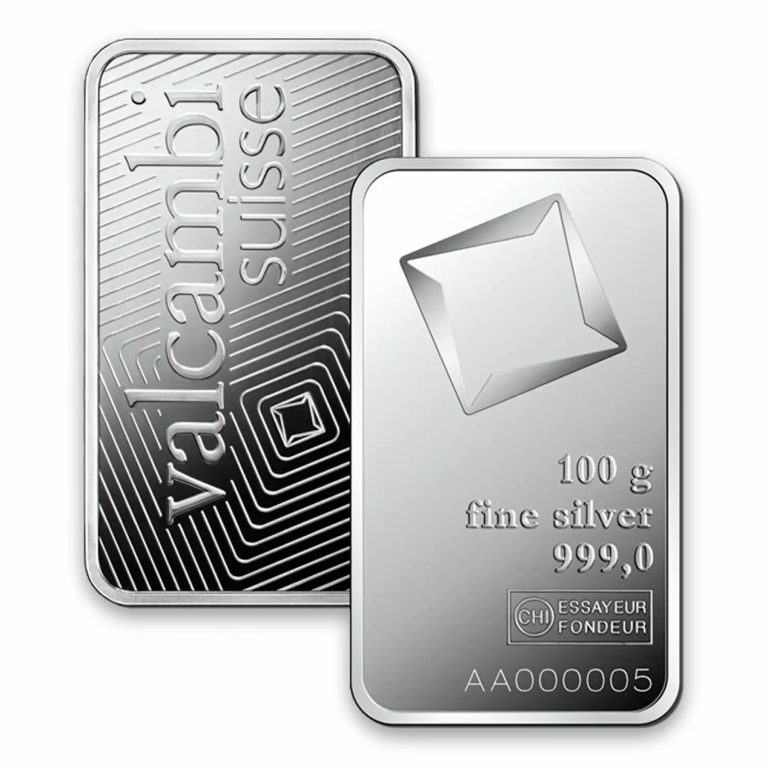 Want to buy a gold bar from one of the genuine bullion dealers? Order the high-quality 100g Valcambi Minted Silver Bar online today from us! The silver bar price is updated on our website every minute.