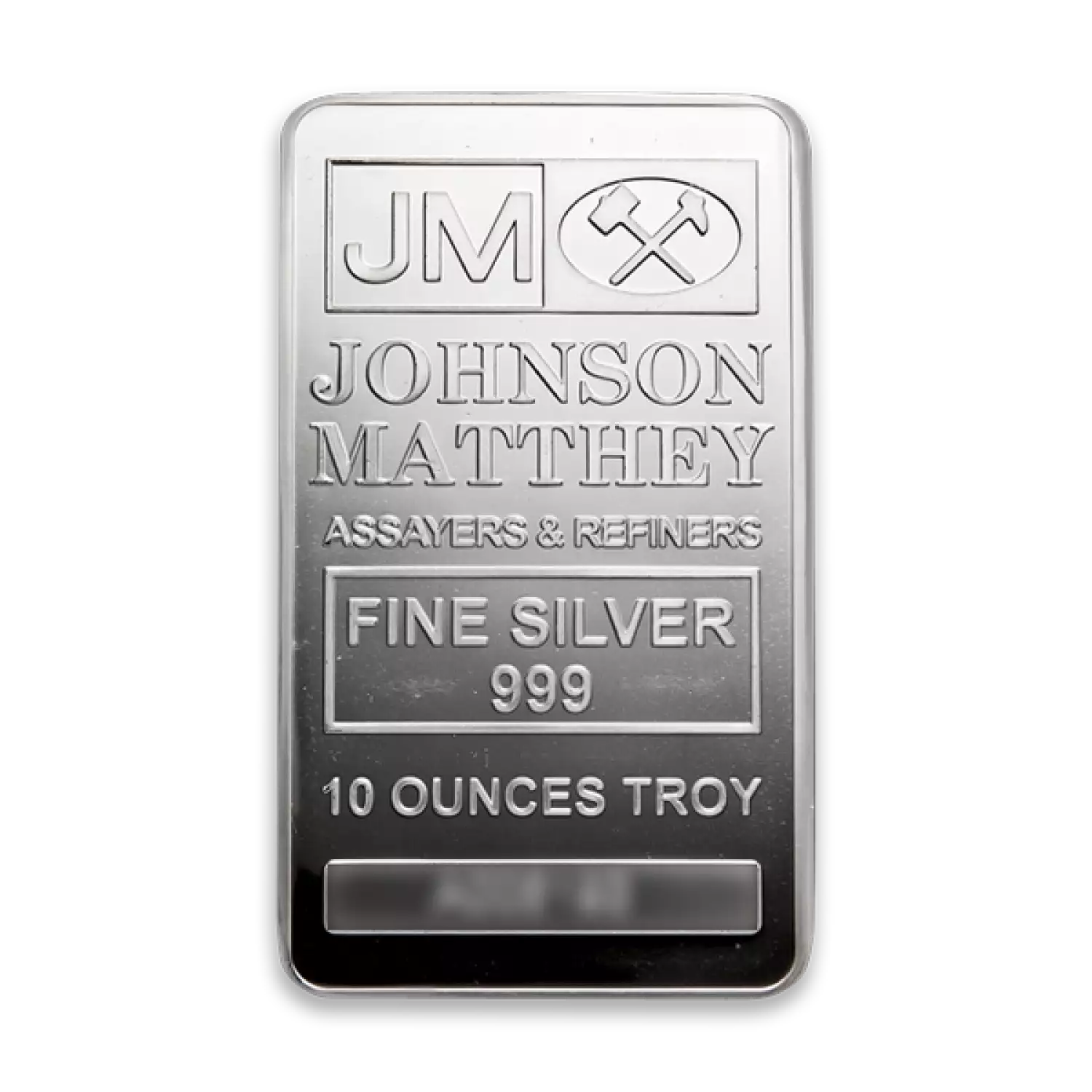 Johnson Matthey is known for its high-quality minting and is extremely popular in the precious metals industry. The 10oz Johnson Matthey Silver Bar is composed of 10 troy ounces of .999 fine Silver. The obverse of the silver bar displays the JM logo, weight, purity, and a unique serial number, while the reverse may feature diagonally-oriented, repeating JM hallmarks or be blank.