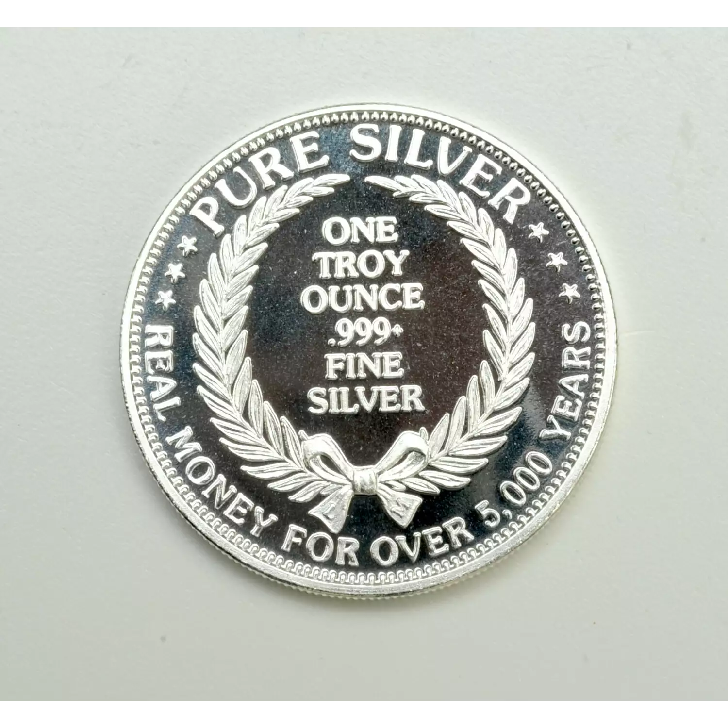 This 1oz silver round is a custom made silver bullion coin. It features a beautiful image of the Hindu Goddess Lakshmi (Laxshmi) on one side with a generic design on the reverse. This silver coin is not only a great investment in silver, but is perfect for those who practice the religions where making a puja (offering) to the Lakshmi goddess with a 999 fine silver coin is appropriate.