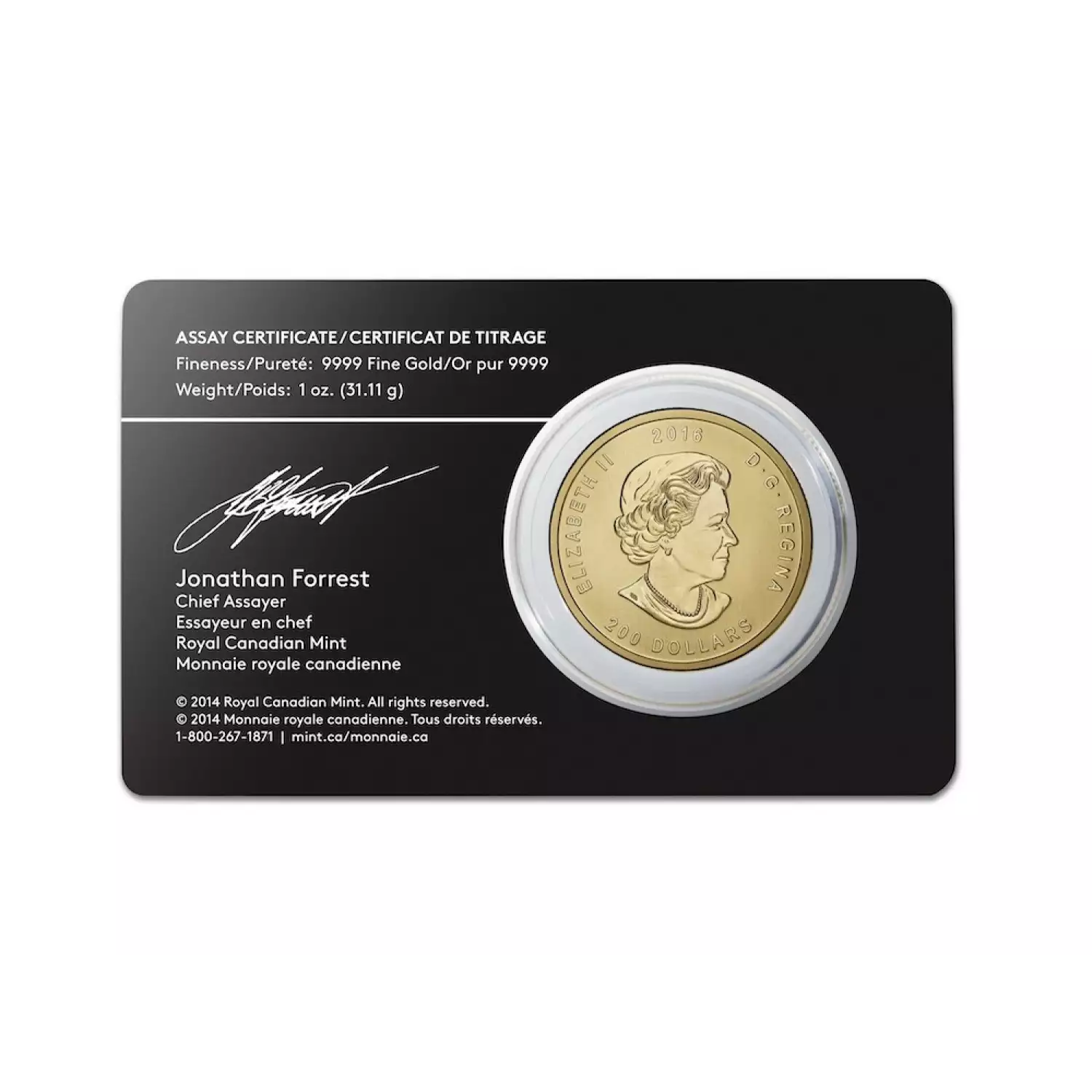 - Weight and purity guaranteed by the Royal Canadian Mint