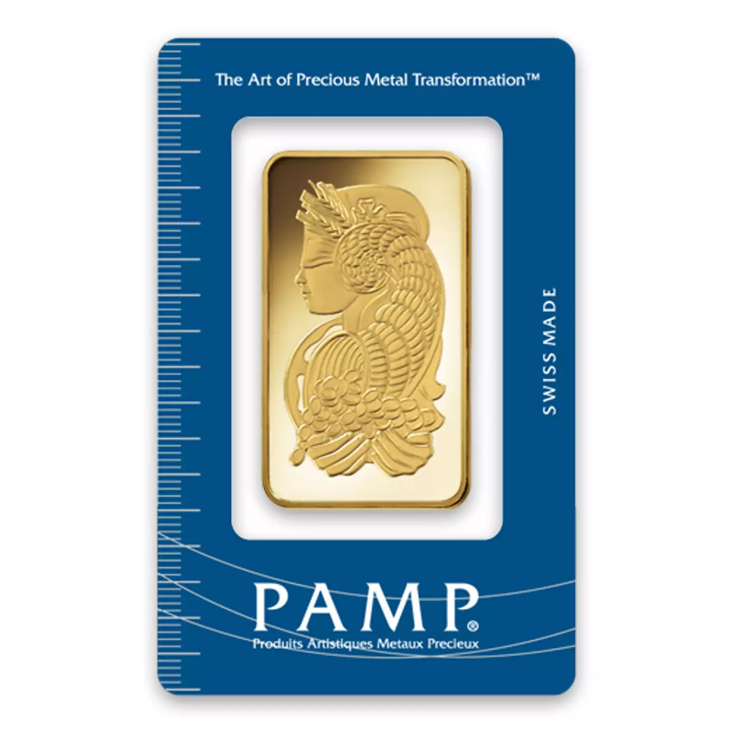 PAMP Suisse is one of the popular brands of Gold bars worldwide. Lady Fortuna is the Roman Goddess of luck and fortune. Manufactured by PAMP Suisse, PAMP Gold Bars are well-known among investors and collectors for their high purity, excellent quality and liquidity. These gold bars feature the beautiful Fortuna design.