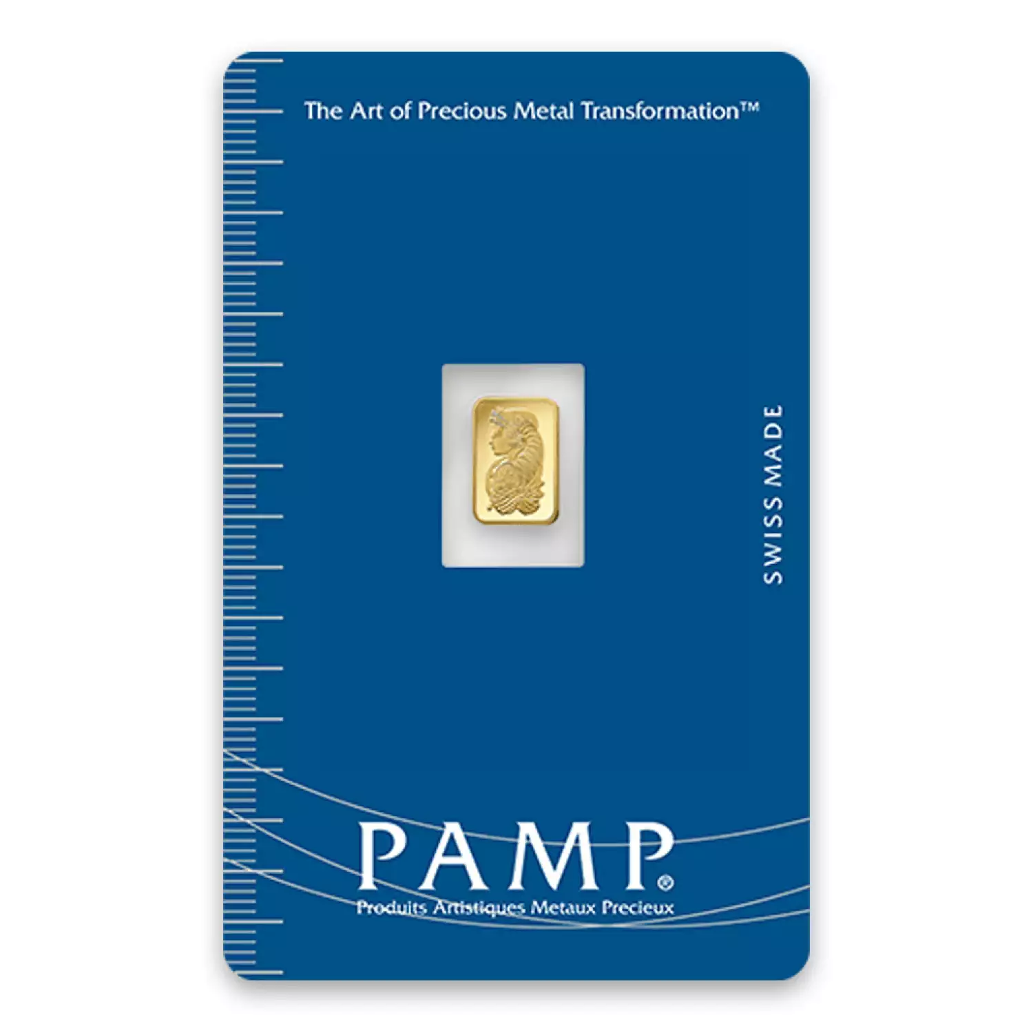 Gold bars are a popular way to invest in Precious Metals, and PAMP Suisse is the world’s popular brand of Gold bars. 0.50 grams PAMP Gold Bar - Fortuna is one of the fantastic gold bars available in the Lady Fortuna series. Minted by the premier private mint PAMP Suisse, this stunning gold bar depicts the popular Lady Fortuna design.