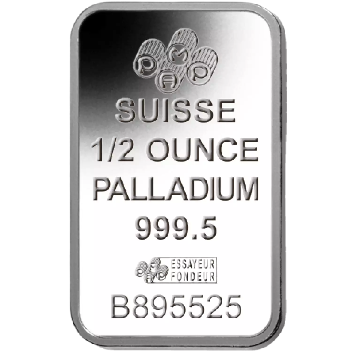 The 1/2oz PAMP Suisse palladium bar is both uncommon and beautiful. Palladium coins and bars are less popular than gold or silver bars but palladium is, nonetheless, a unique precious metal.