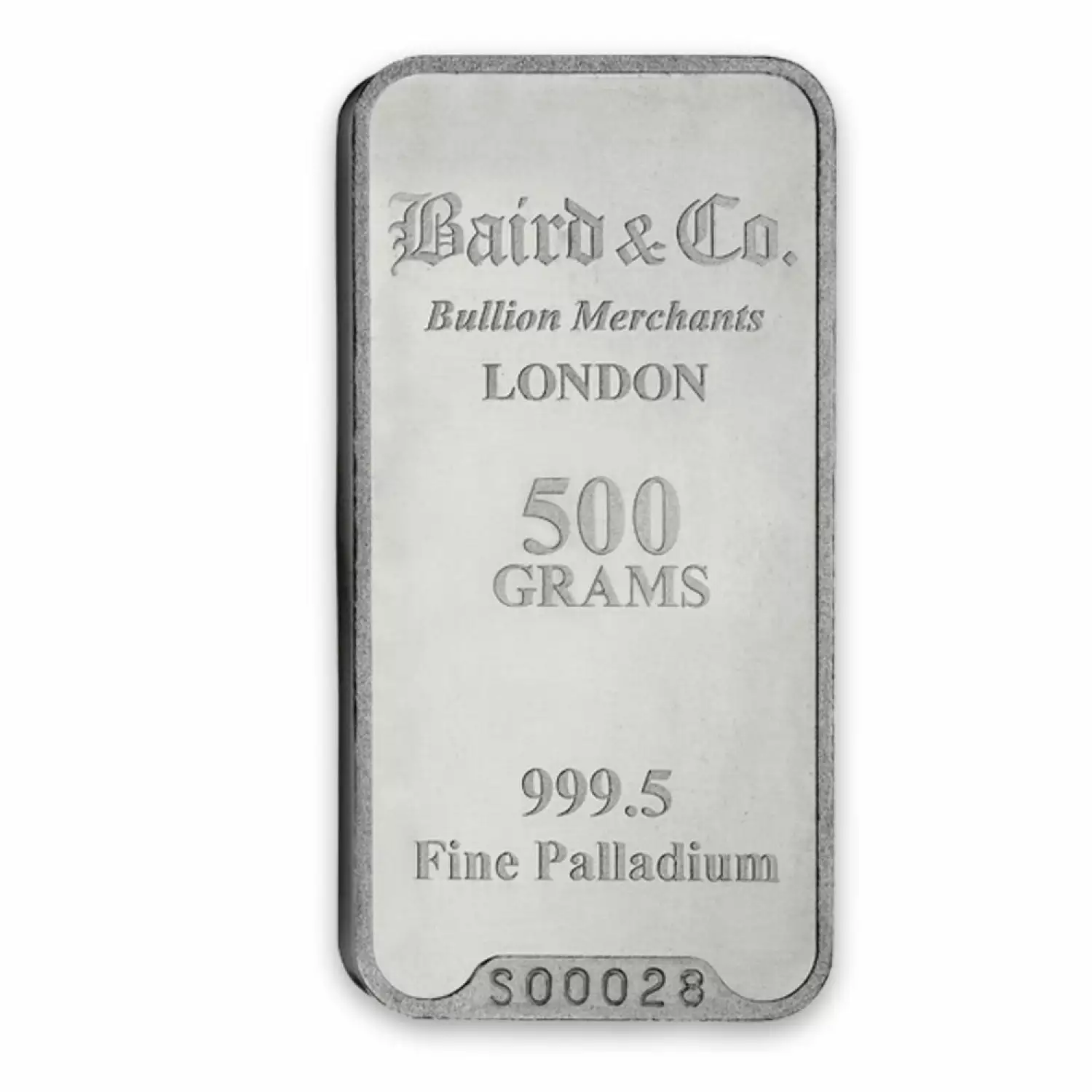 Baird & Co. is a United Kingdom mint producing palladium bars since 1967. Each 500g Baird & Co Palladium Minted Bar contains 500 gramsof .9995 fine palladium.Most investors will not buy silver bullion that is not at least 999 pure silver.