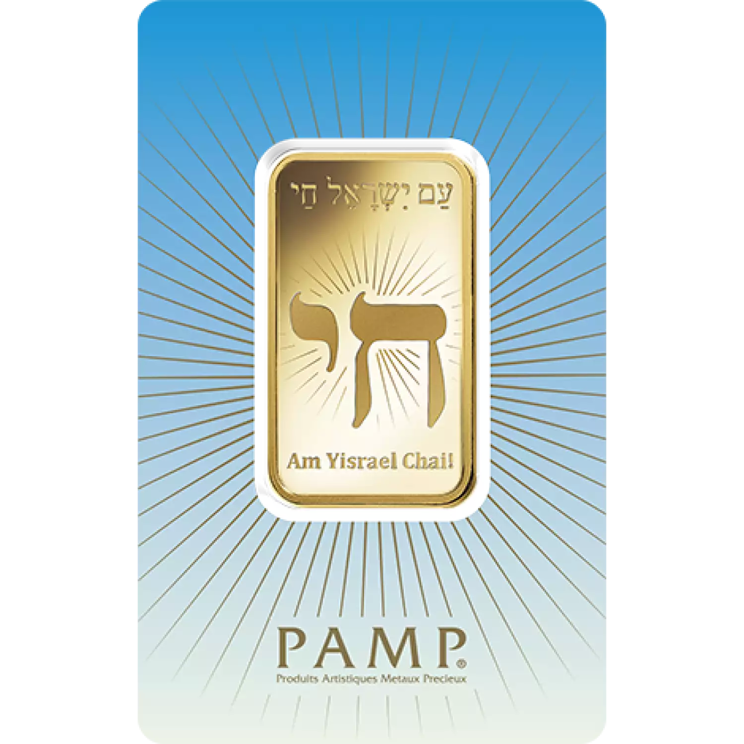 PAMP is the world-renowned producer of precious metals bars. The PAMP Gold Bars have been accepted as a great delivery by the Swiss National bank since 1986. "Am Yisrael Chai" is a statement of survival in the Jewish religion.