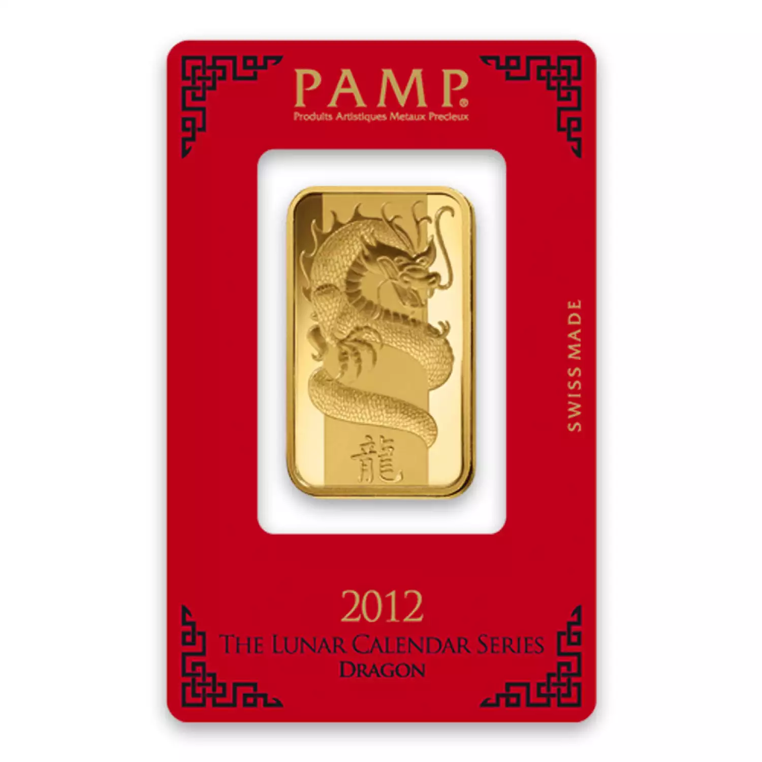 Buy the high-quality 1 oz PAMP Gold Bar - Lunar Dragon today from us online! The gold price is updated on our website every minute.