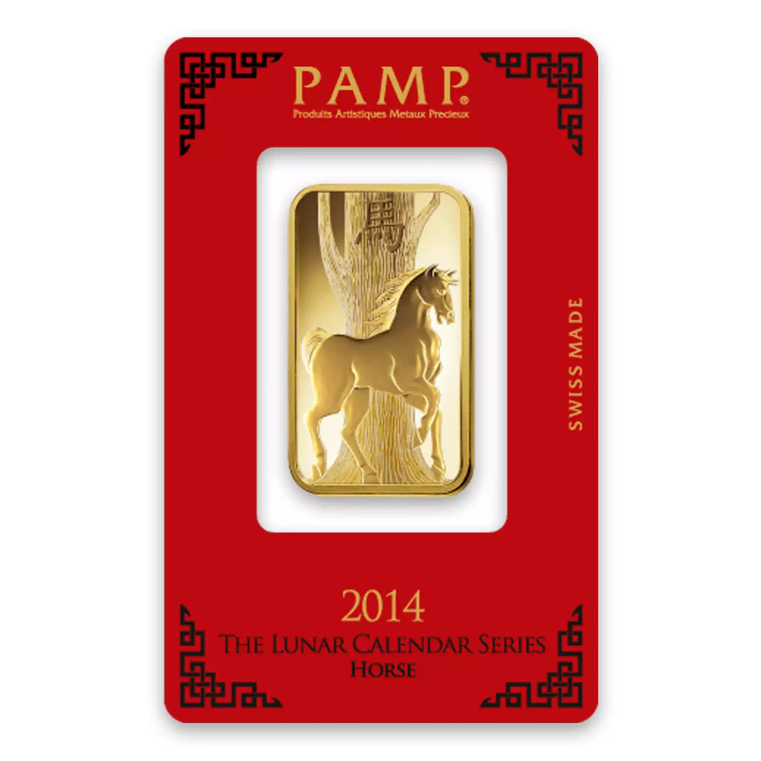 The 1 oz PAMP Suisse Lunar Horse Gold Bar is one of the popular gold bars produced in the lunar gold bar series.