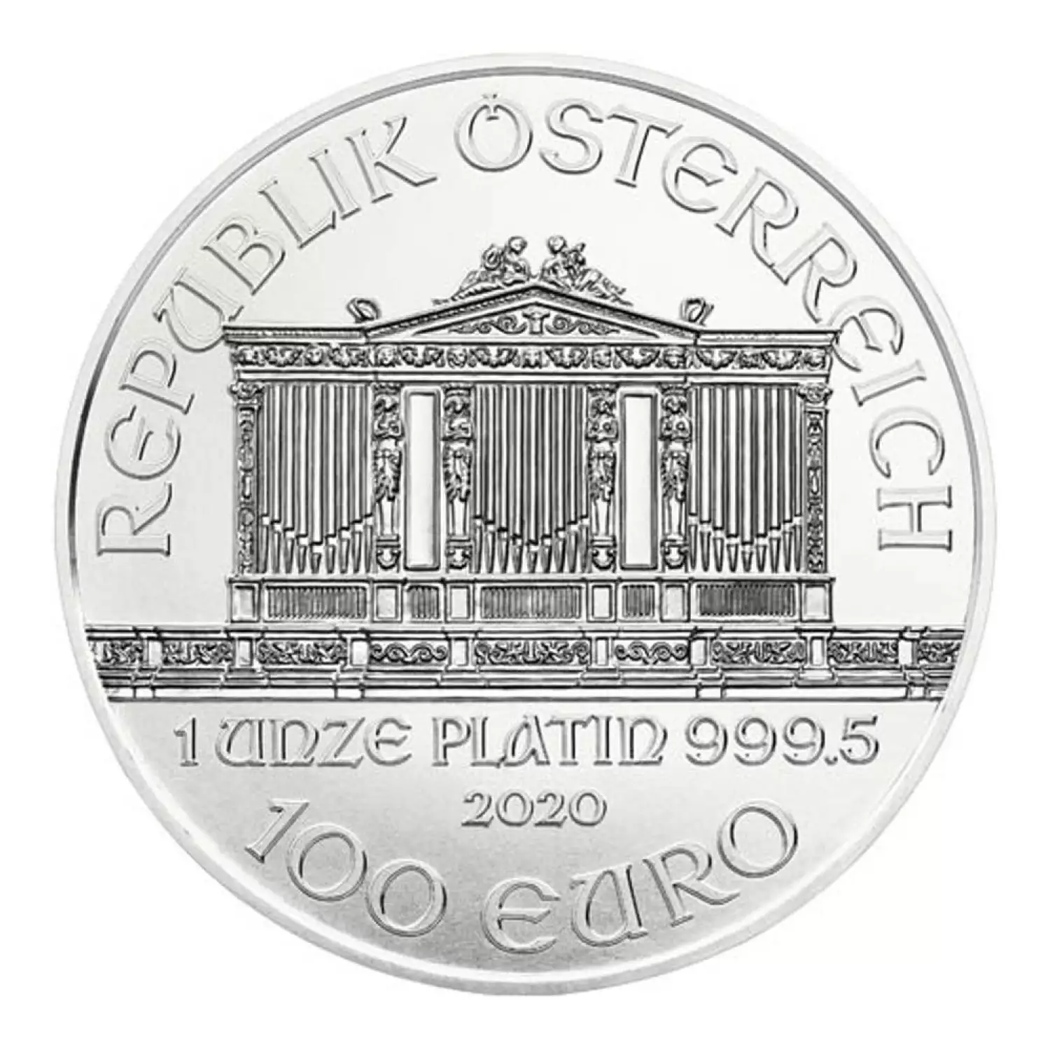 Guaranteed by the Australian Mint, the 2020 1oz Austrian Platinum Philharmonic is composed of 1 troy ounce of .9995 fine platinum. The obverse of the coin depicts the Great pipe organ in the Gold Hall of the Wiener Musikverein.