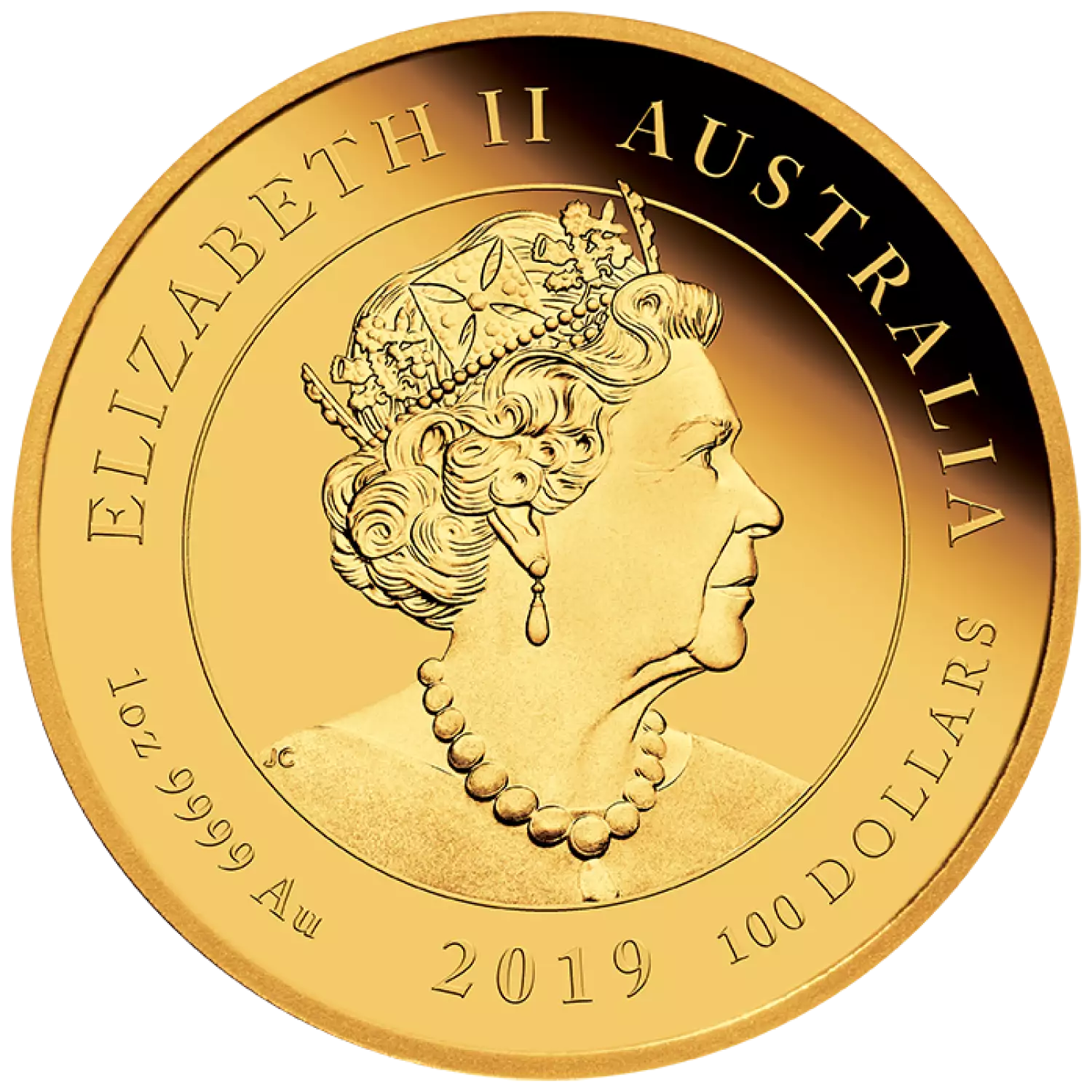 The 2019 1 oz Australian Perth Mint Gold 50th Anniversay of the Moon Landing is a special release from the Perth Mint. This proof gold coin has a beautiful design that commemorates this historic event which captured the world's imagination in 1969. This bullion coin contains 1 oz of .9999 fine Gold. The Obverse features the Raphael Maklouf effigy of Her Majesty Queen Elizabeth II. The Reverse depicts the lunar landing module along with the imprint of Neil Armstrong's "first step" on the moon's surface. For anyone who wants both a collectible and beautiful gold coin as well as a solid investment in gold bullion, this gold coin is a great choice.