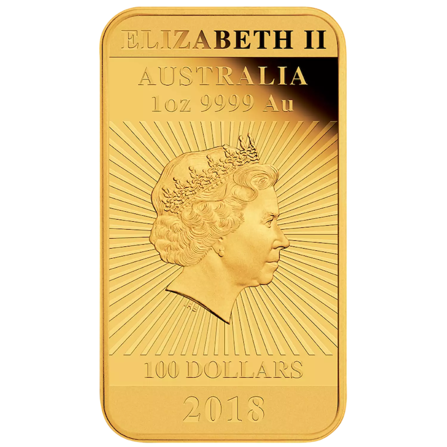 2018 Australian Perth Mint 1oz Dragon Gold rectangular coin