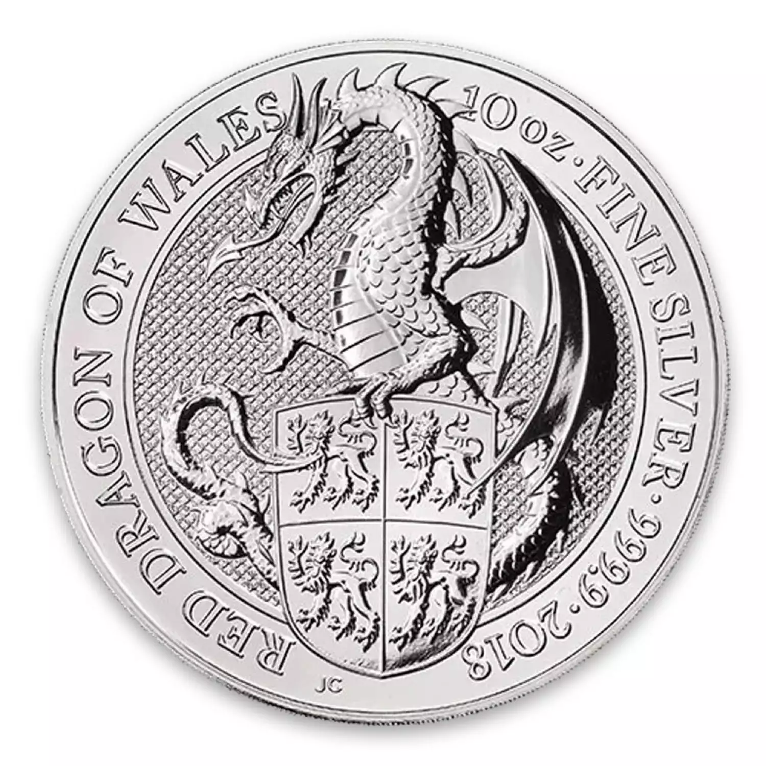 The 2018 10oz Britain Queen's Beast: The Dragon of Wales the third release in the Queen's Beasts series, featuring the Dragon of Wales.