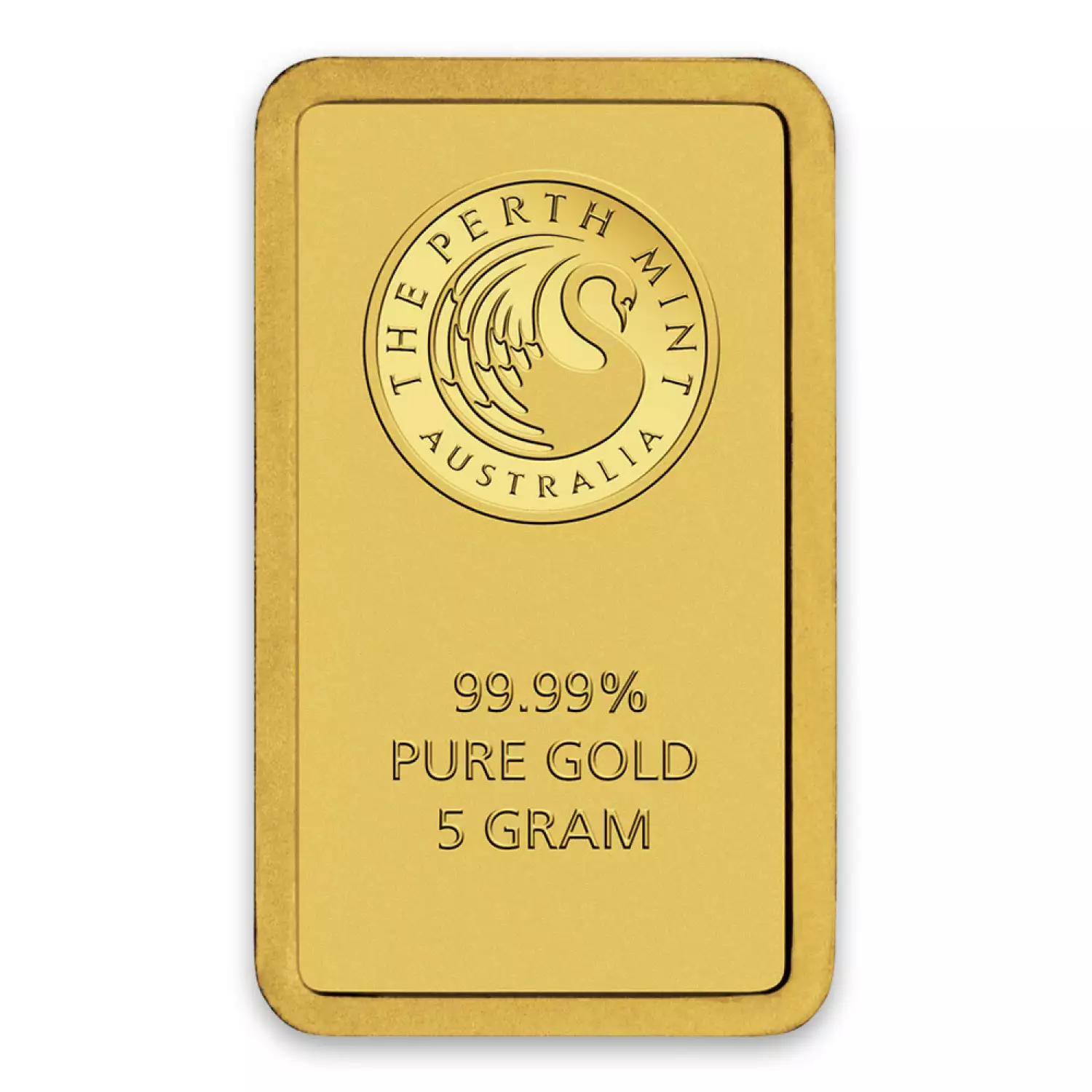 Smaller gold bars, like 2.5g, 5g, or 10g make it easier to discreetly travel as these gold bars are small enough not to attract the attention of would be thieves.Each 5g Australian Perth Mint gold bar – minted contains 5 grams of .9999 fine gold.