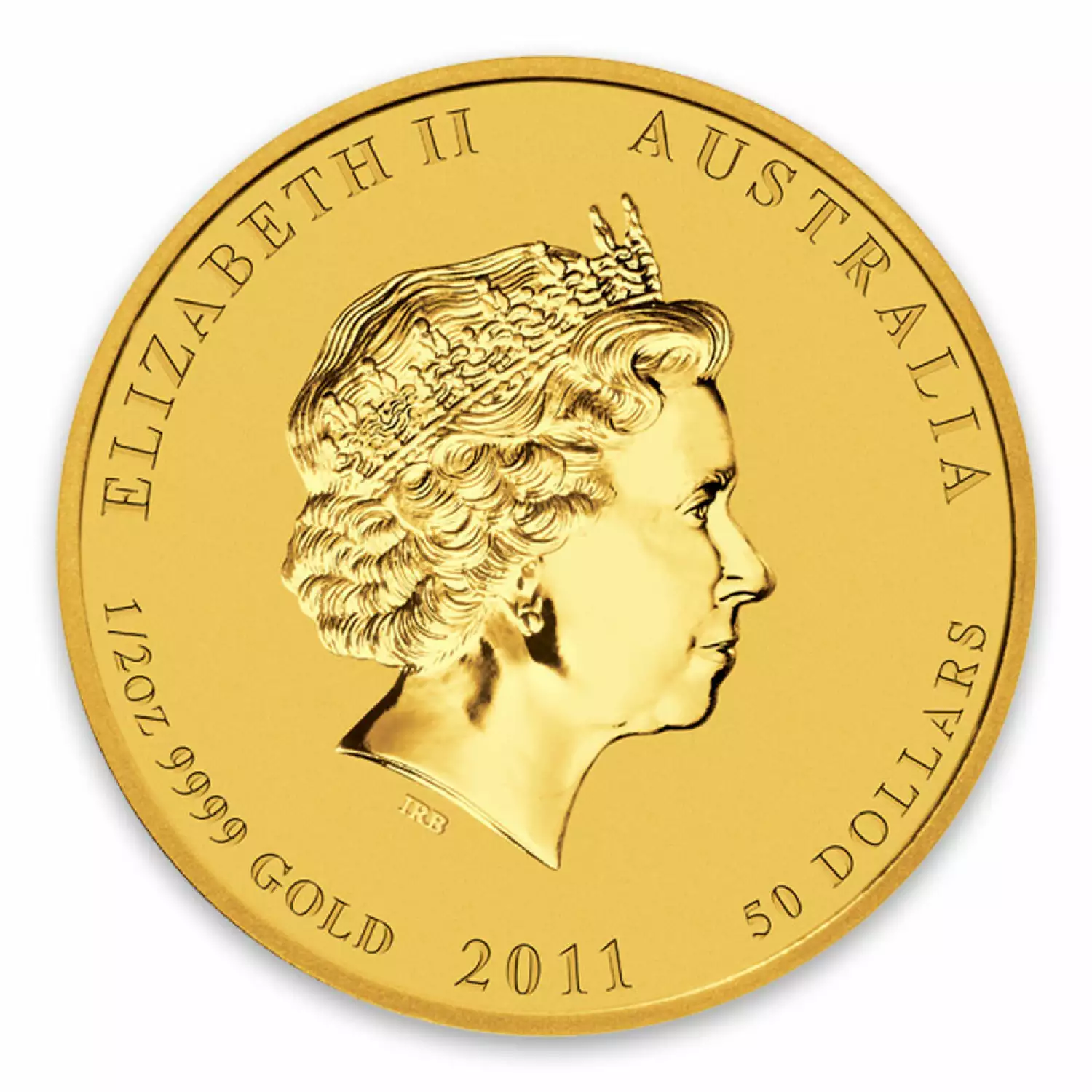 The 2011 1/2 oz Australian Perth Mint Gold Lunar II: Year of the Rabbit is composed of 1/2 oz of .9999 pure gold and has a face value of 50 AUD.