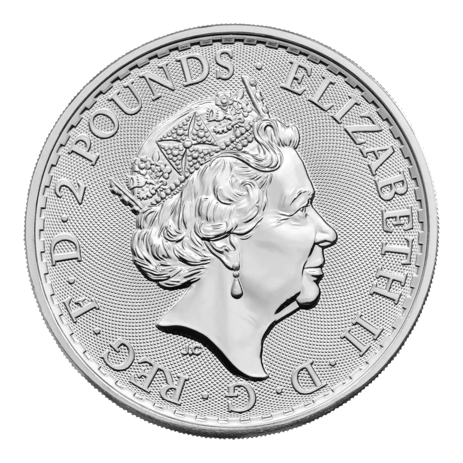 Britain's Silver Britannia Coin is one of the more popular bullion programs on the European continent. The obverse of the 1oz 2023 British Silver Britannia coin features the effigy of Her Majesty Queen Elizabeth II, along with the face value of 2 pounds. The reverse of the coin depicts the image of Britannia on the reverse.