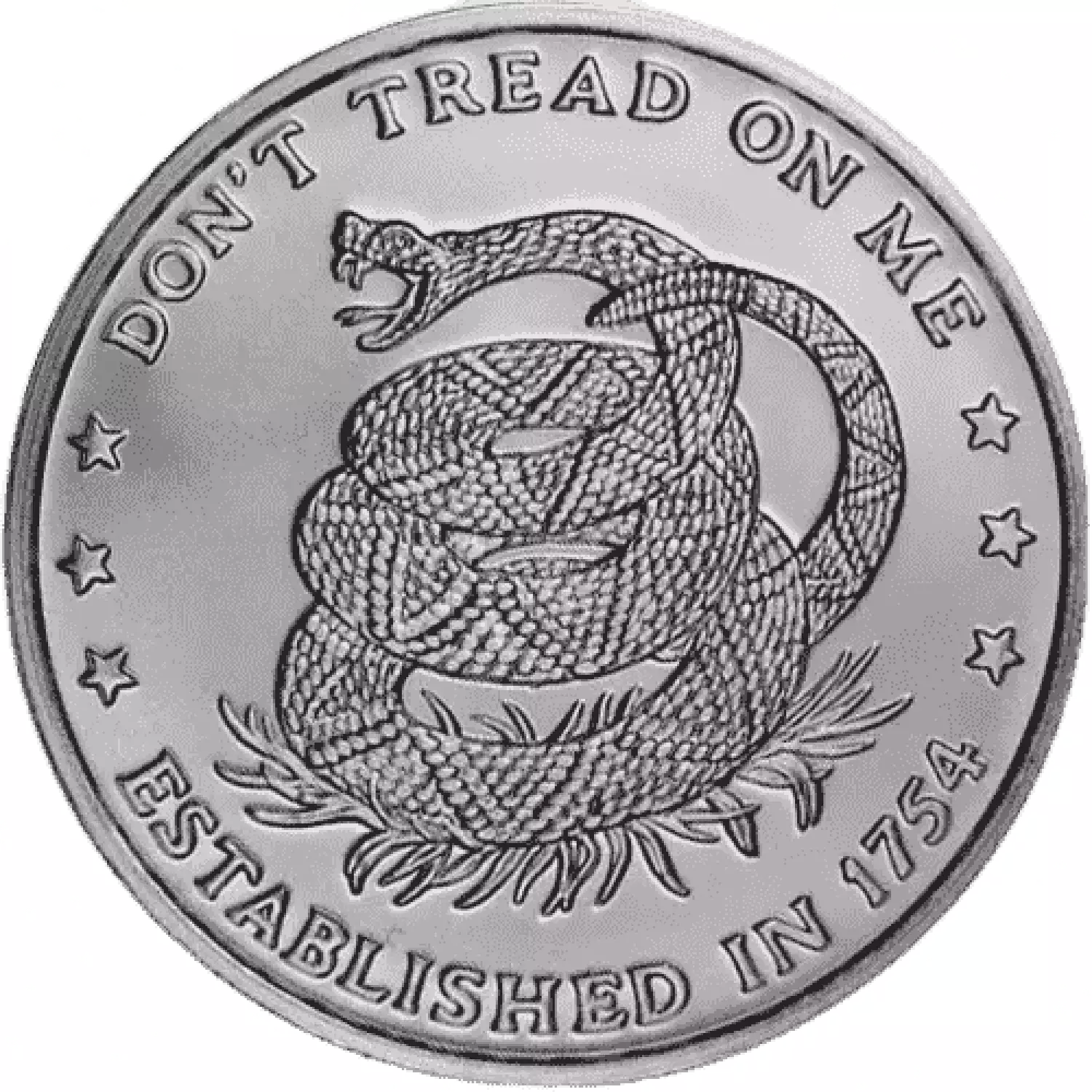 • Obverse field includes the coiled snake from the Gadsden flag.