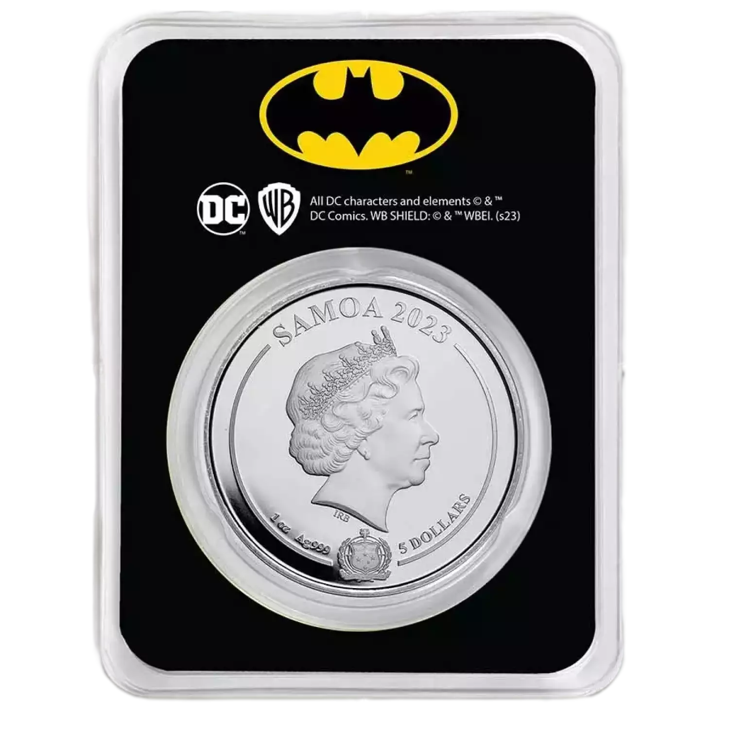 • Housed in TEP - RF-welded plastic polymer case (2 1/2" x 3 1/4"), protecting the coin's finish along with Batman imagery style card.