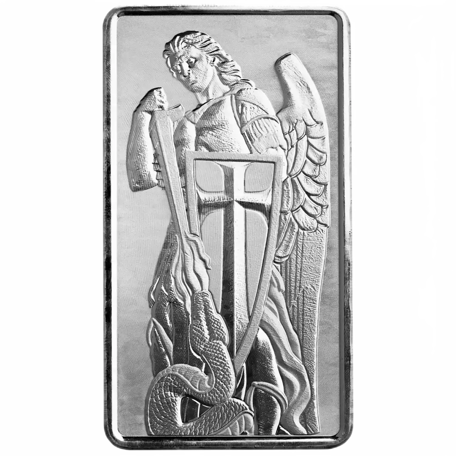 Archangel Michael is most often thought of as the angel of protection and the most powerful of all the angels. Michael leads God’s armies against Satan’s forces in the Book of Revelation, where during the war in heaven he defeats Satan. Celebrate this victory over evil with the new 10 oz Archangel Michael silver bar!