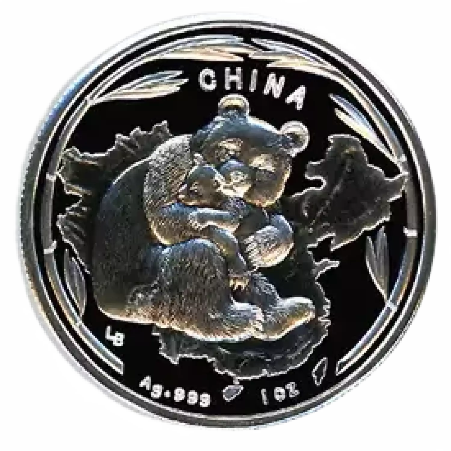 On the obverse (front) of this coin/medal the Nude Poser on the Great Wall of China, is reminiscent of the famous Marilyn Monroe calendar pose. A Panda holding her cub is superimposed on a map of China on the reverse. A nonsensical design but extremely well done! This medal weighs one-ounce, is struck in .999 pure silver and measures 39 mm (a bit larger than an old U.S. silver dollar).