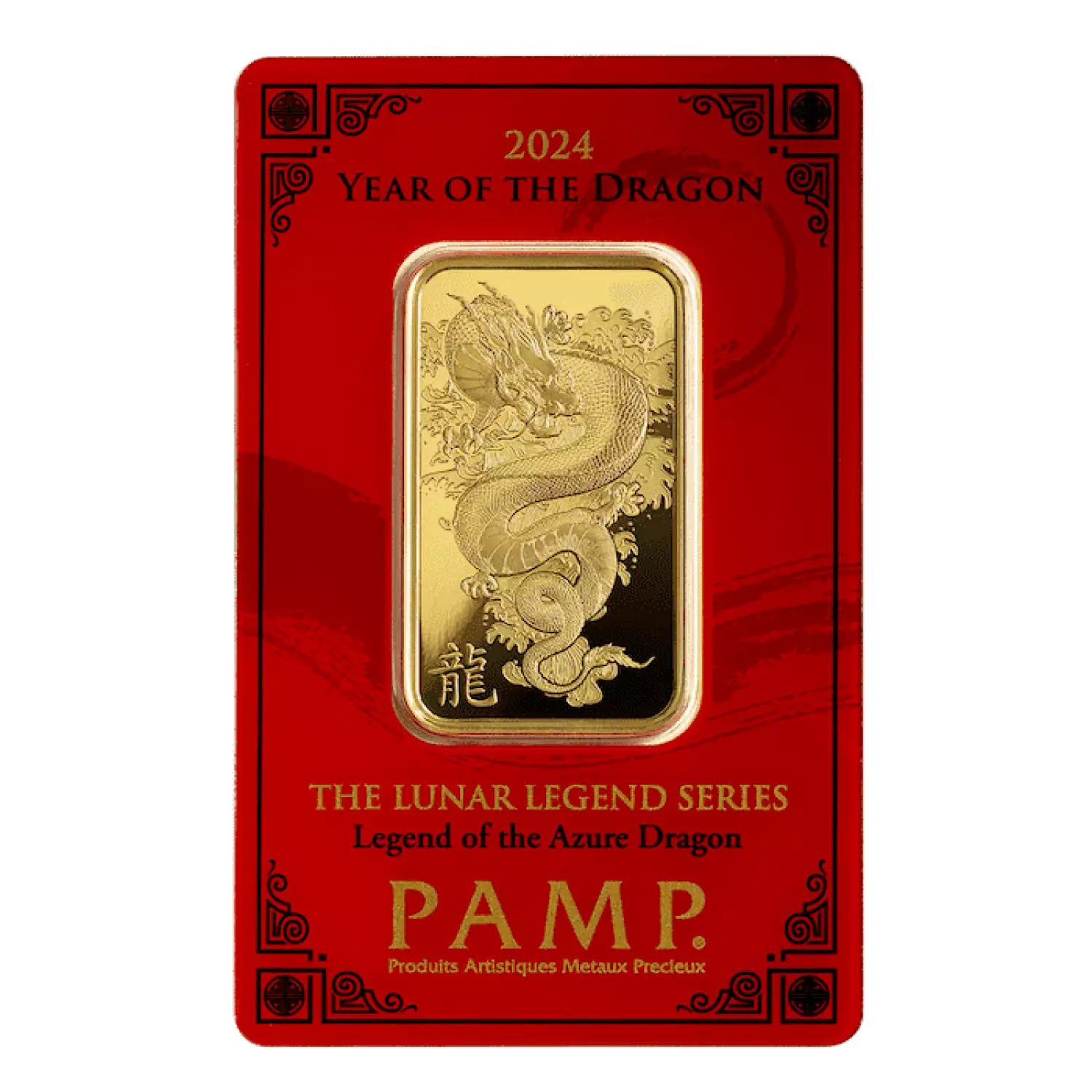 2024 1 oz PAMP Suisse Lunar Legend Azure Dragon Gold Bar