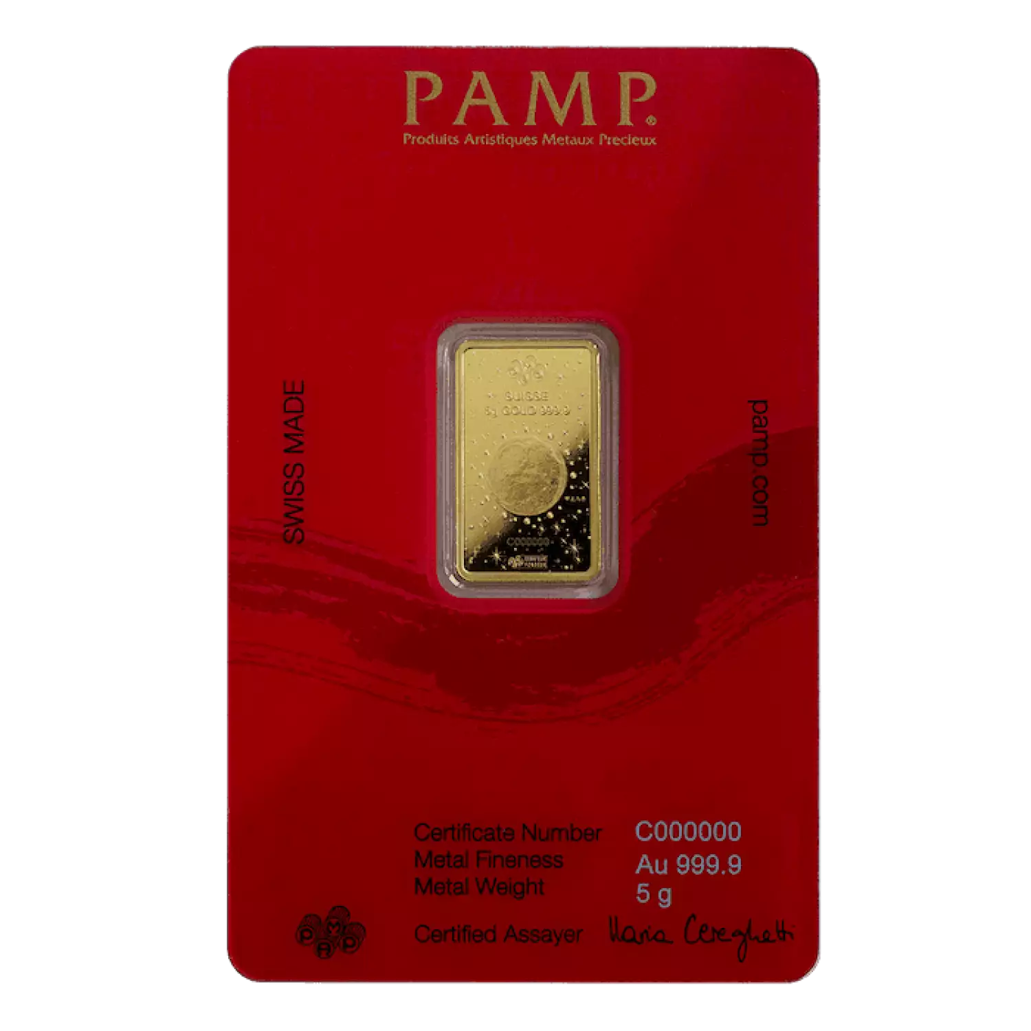 To enhance the allure of these bullion bars, each one comes impeccably packaged with a stunning red CertiPAMP™ assay card, enclosed within an elegant envelope. These bars make for the perfect New Year gift, radiating both elegance and cultural significance.