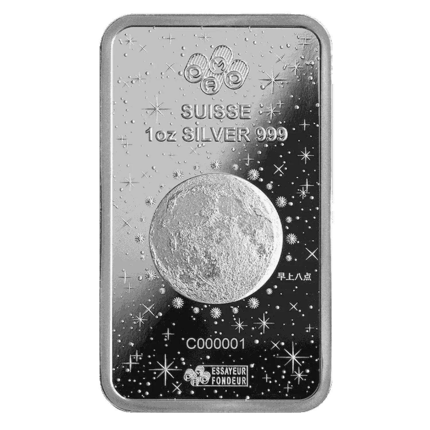 The Azure Dragon, known as the guardian of the east, heralds the arrival of the spring season and holds the mythical power to influence rainfall, a crucial factor for abundant harvests. On the obverse of these bars, you'll find a stunning design featuring all twelve animals of the lunar cycle, forming a celestial constellation around the central new moon.