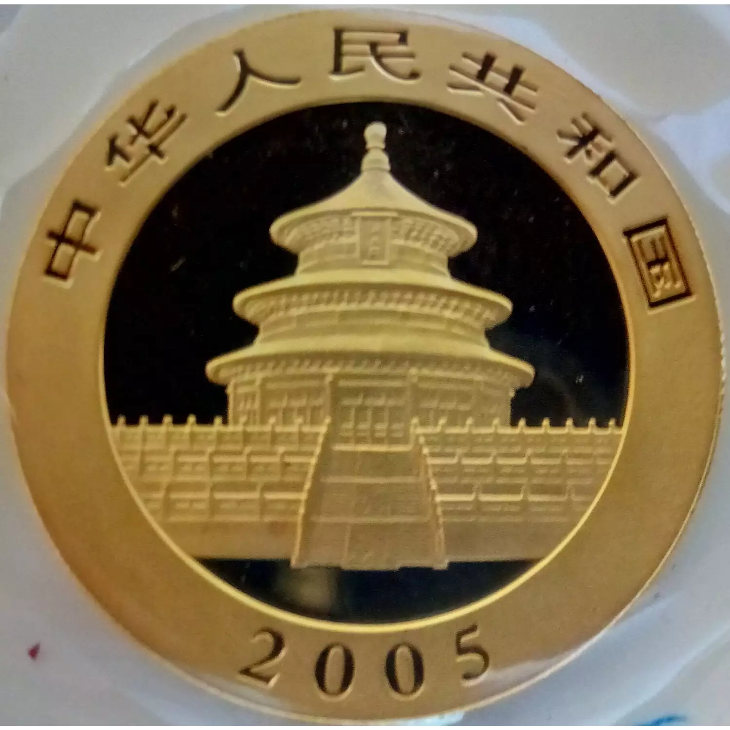 The 2005 Chinese Gold Panda coin is minted as .999 fine gold, 24 karat.