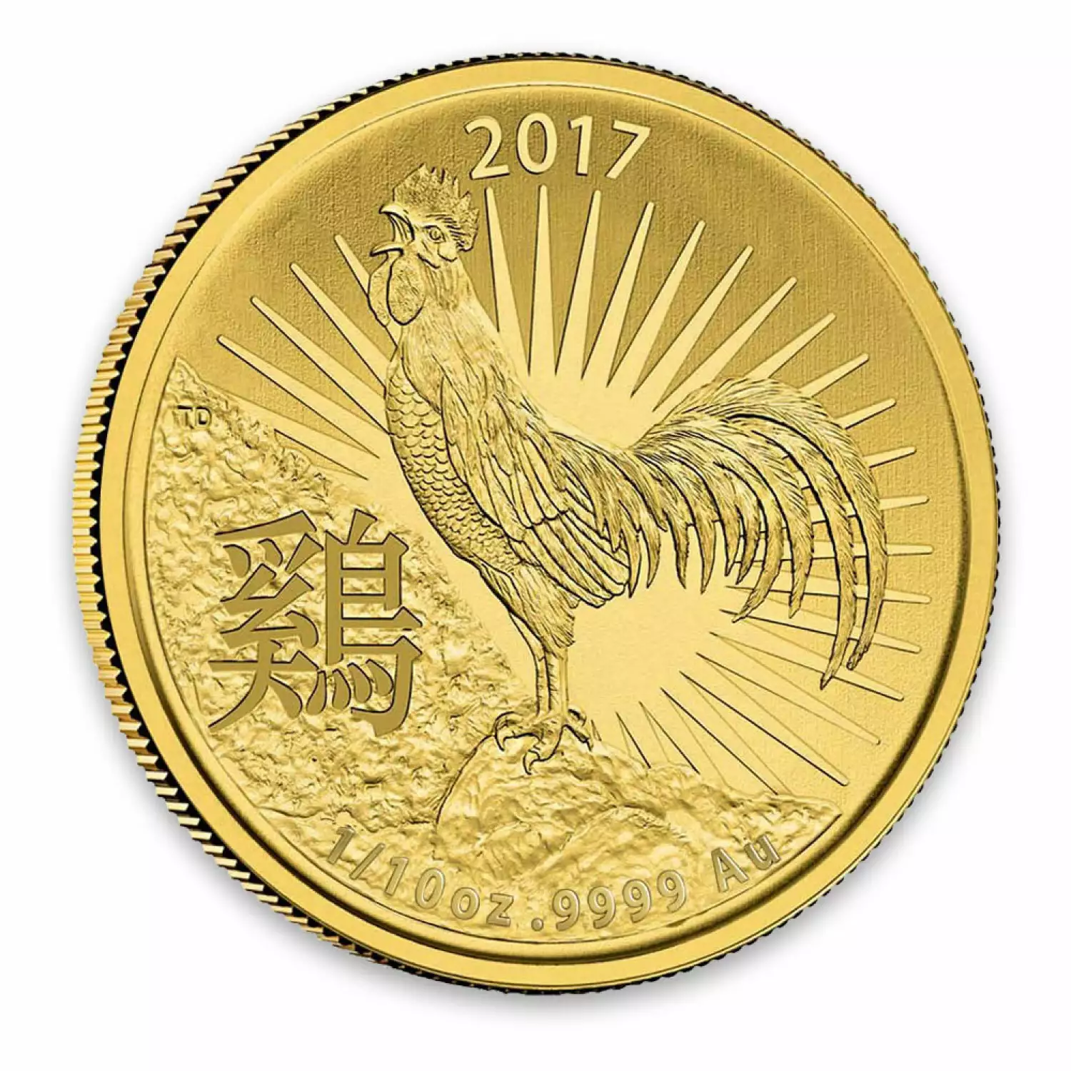- The Reverse features a rooster calling out with the sun beaming behind it along with the Chinese character for "rooster" surrounded by the date, weight and purity